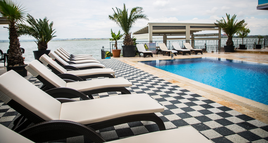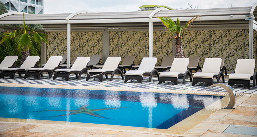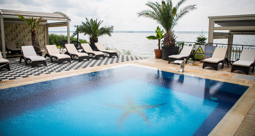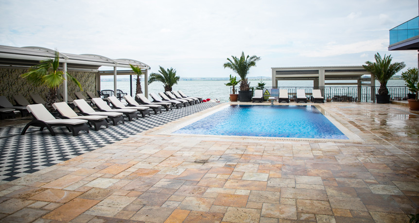 Piscina este un mod plăcut de a te răcori și de a te bucura de proprietățile minunate ale apei sarate, fie că vrei să înoți, să îți tonifici mușchii sau să te bălăcești împreună cu familia. Piscina noastră are o adâncime de 1.60 m și este dotată cu 1 perdea de apă ce au efect de masaj care tonifică mușchii spatelui, gâtului și amelioreaza stresul. Totdată ziua si toata, seara te poți bucura de cerul înstelat și de luminile colorate ale piscinei, iar după o baie relaxantă te poți destinde pe șezlonguri, citind, meditând sau savurând un cocktail de la pool barul nostru.